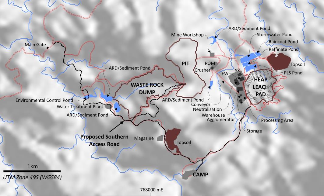 The LOM processing costs equate to $6.10 per tonne ore stacked, with the key component being electricity consumption. Power is proposed to be sourced from the development of a new, dedicated biomass power station located within 135km of the site with a dedicated transmission line connecting the power station and BKM. The biomass power station will be built and operated by a third-party supplier. The current cost model adopted for the project delivers an average unit cost of 11.4c per kilowatt hour over the life of the heap leach facility.