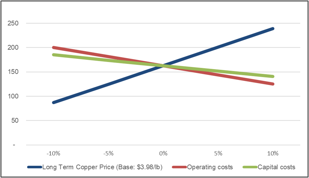 Support Service costs include transport and logistics (contracted), site camp services (contracted),Supply Chain Management, Information Technology, Environmental, Sustainability and Governance and overhead administration activities. The LOM unit cost of these activities in the financial model is $3.05 per tonne ore processed or $0.34 per pound copper produced.